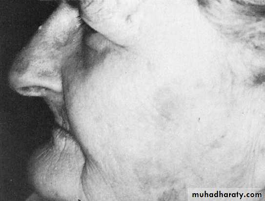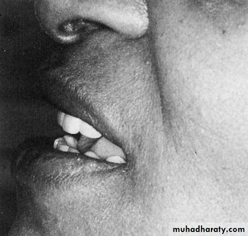• Teeth set directly over ridges causes insufficient lip support characterized by:• Drooping of corners of mouth,