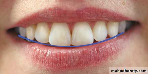 Line formed by upper anterior teeth should follow curved line of lower lip during smilingVertical positioning of upper canines are responsible for shape of smile line