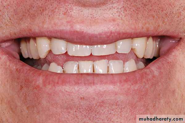 The amount of the upper anterior teeth that will be seen during speech and facial expression depends on length and movement of the upper lip.If the upper lip is relatively long, the natural teeth may not be visible when the lip is relaxed or even during speech.