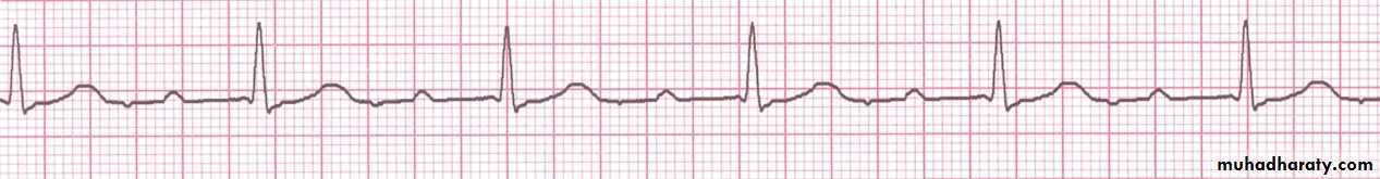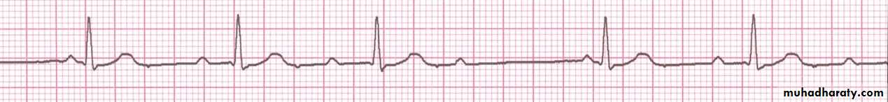 Fig: first degree heart block, showing prolonged PR interval(0.38 s)