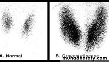 • Scintigraphy with 99mTc is useful for differentiating Grave’s disease from other causes of thyrotoxicosis, including subacute thyroiditis, multinodular goiter and toxic adenoma.