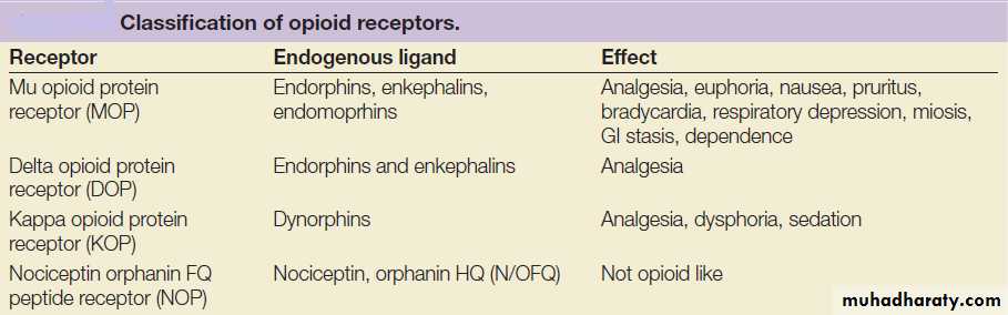 Opioid agonists mediate their effects at three types of opioid receptors: μ (mu) opioid receptors, δ (delta) and kappa (κ).