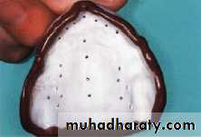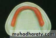 The beading wax is adapted and sealed around the periphery of the impression.Adapt and seal a sheet of base plate wax around the beading wax.
