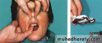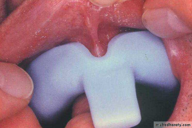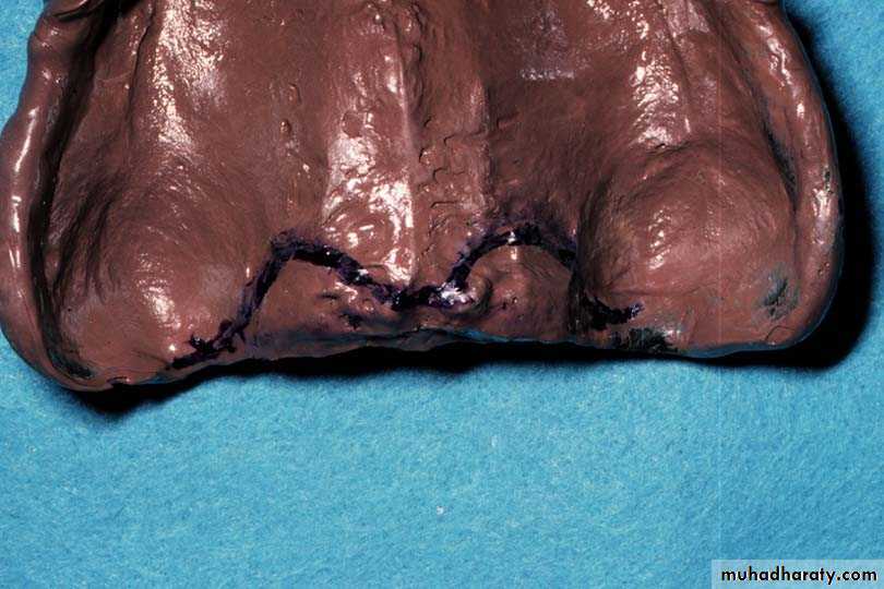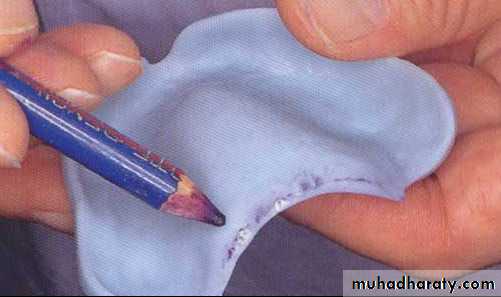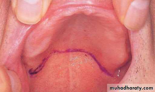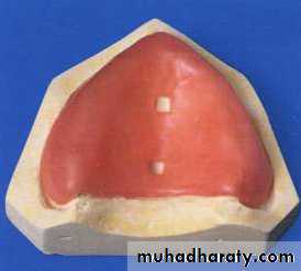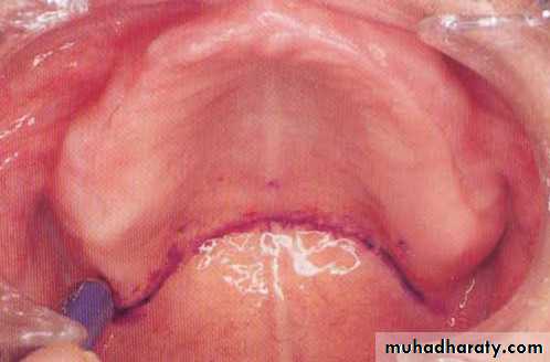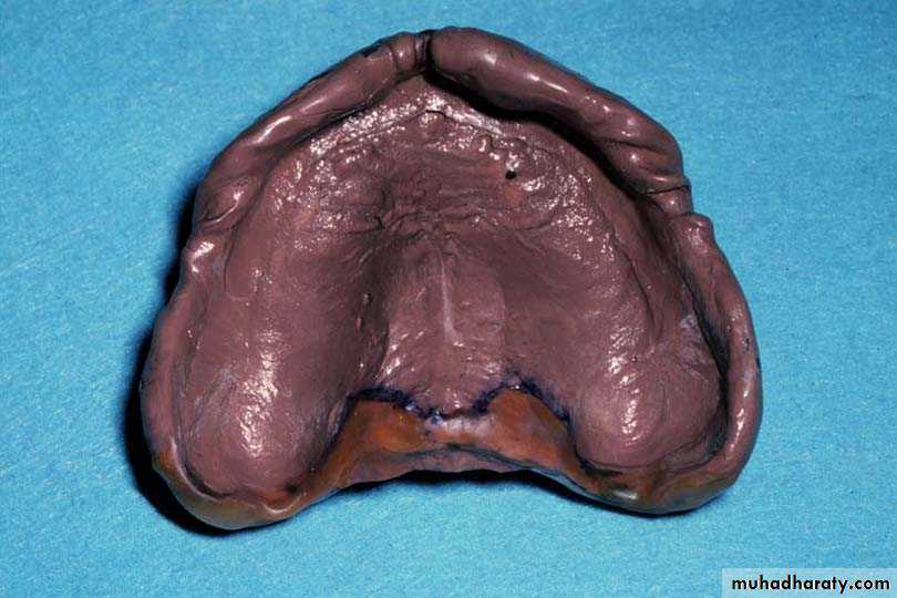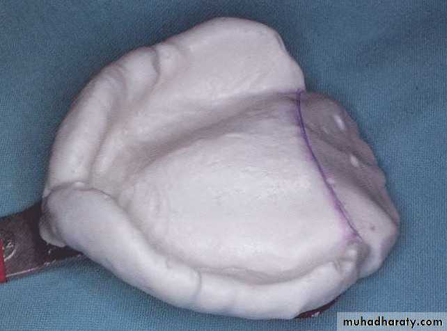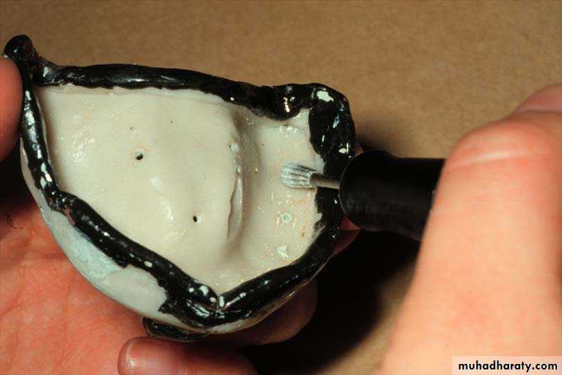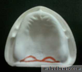 Ant. & post. Vibrating lines are visualized by examining the pt’s mouth and approximately marked on master cast.The lab technician scraped 0.5 to 1mm of stone in posterior palatal seal area of the master cast and fabricates the denture.