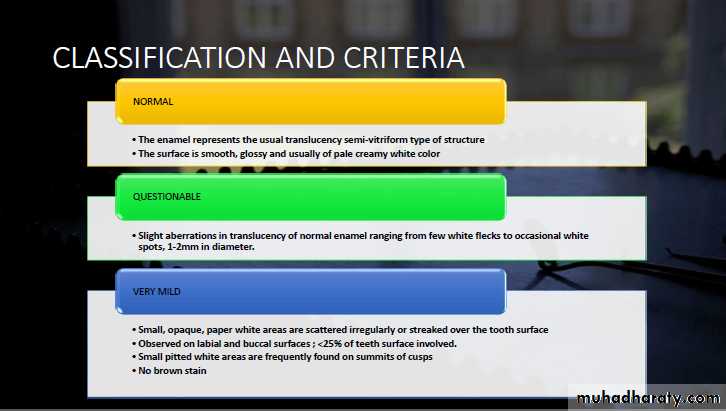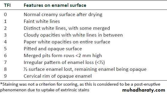 • Granath et al. (1985), comparing the DEAN and T-F indexes, concluded that the latter was more detailed and sensitive because it was based on biological aspects where there is an increase in hypo mineralization with a simultaneous increase in the depth of the enamel surface in direction of the amelo-dentin junction.