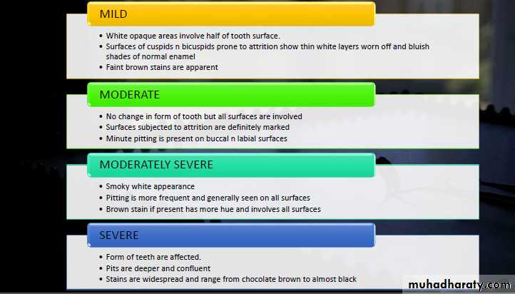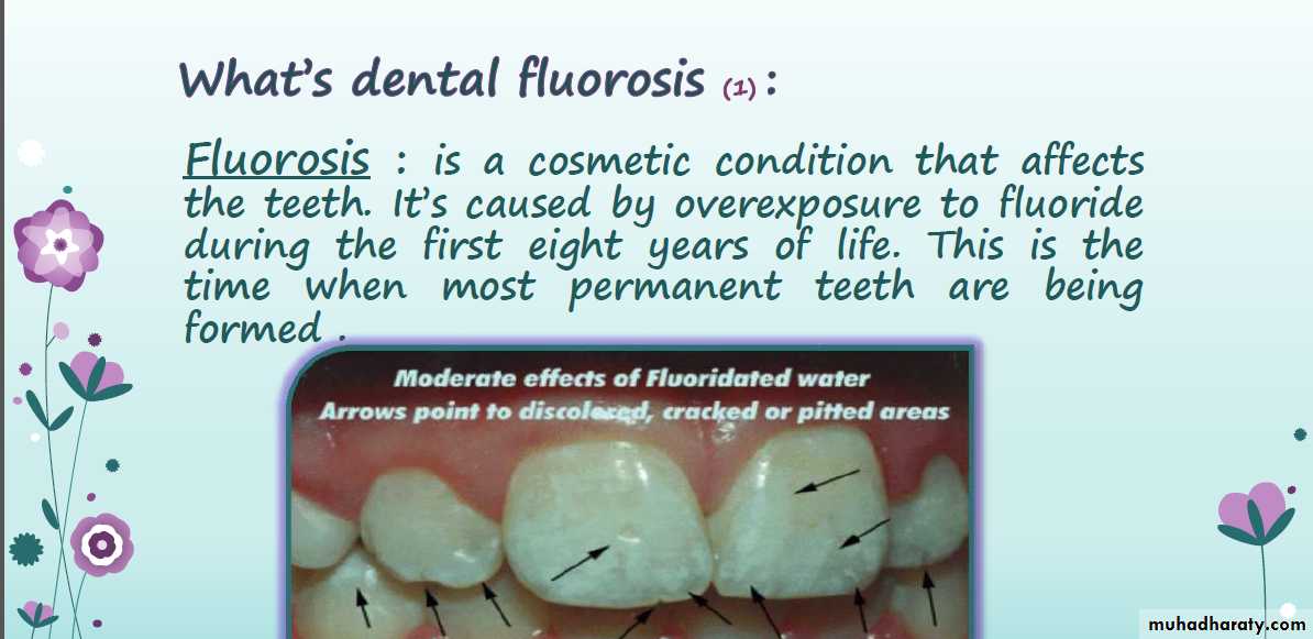 is a hypoplasia or hypo mineralisation of tooth enamel or dentine produced by the chronic ingestion of excessive amounts of fluoride during the period when teeth are developing.HISTORY