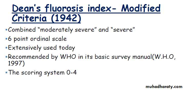 DEAN’S FLUOROSIS INDEX1934; TRENDLEY H.DEAN