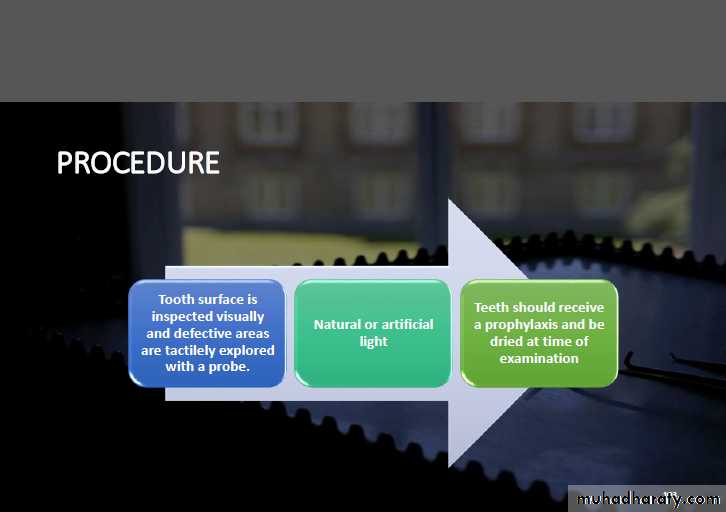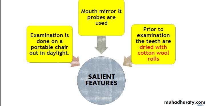 No specific information as to whether the teeth were cleaned or dried before examination is given