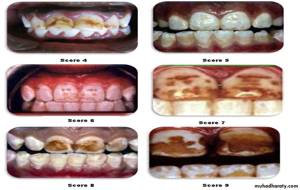 Each individual recieves a score corresponding to clinical appearance of two most affected teeth.• Examinations are made in good natural light with the subject sitting facing the window