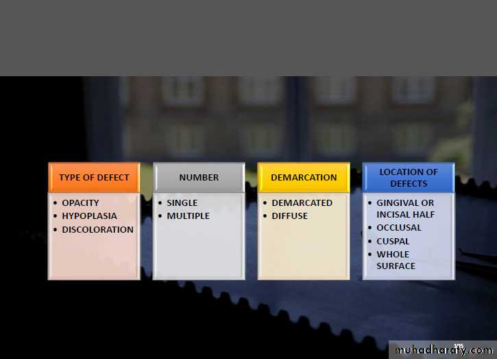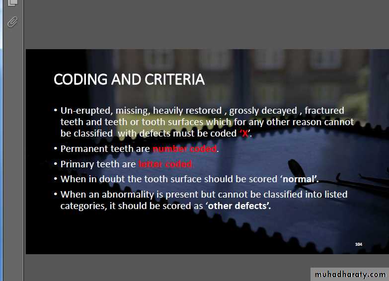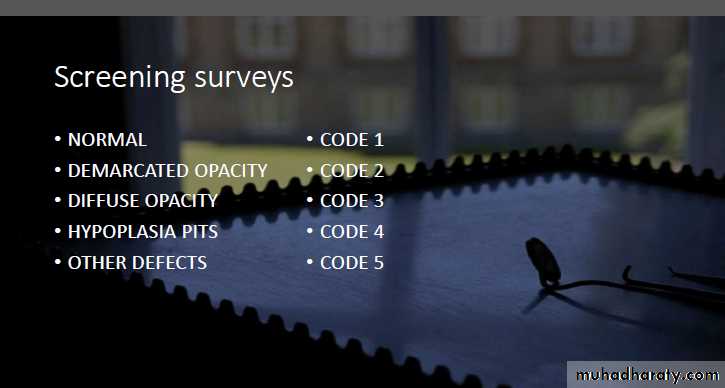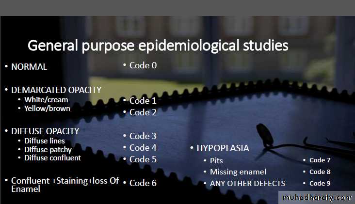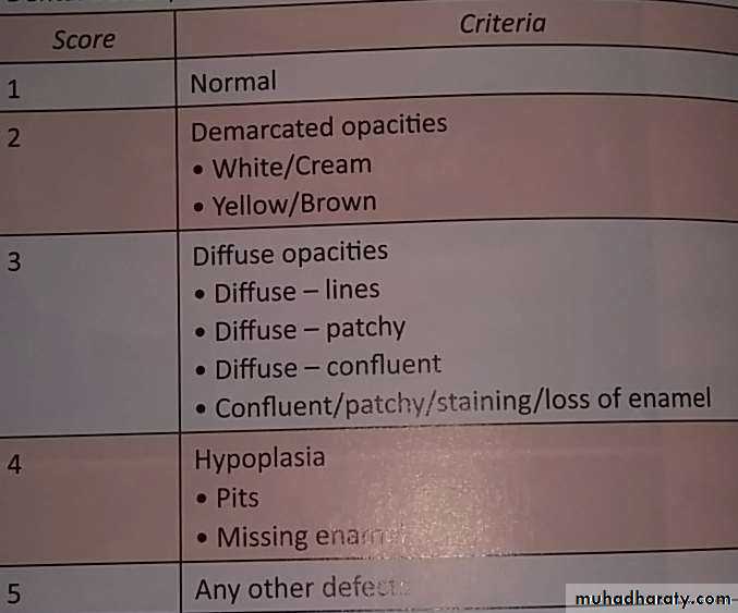 • The developmental defects of enamel was developed by “ FDI –Commission on Oral Health, Research and Epidemiology” in 1982 to avoid need for diagnosing fluorosis before recording enamel opacities.MODIFICATIONS