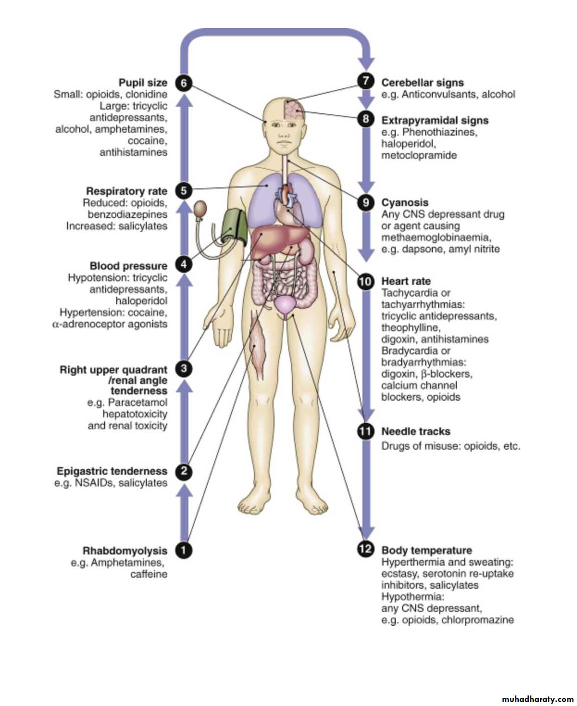 Certain classes of drug cause clusters of typical signs, e.g. cholinergic or anticholinergic, sedative or opioid effects, which can aid diagnosis.