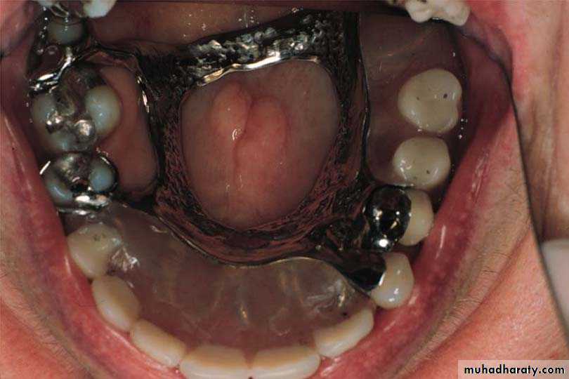 1-All metal2- compensation (Acrylic and metal :metal extended over the half of the palate while acrylic is attached the border of the metal contain small (mesh work) for retention.