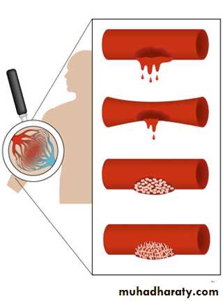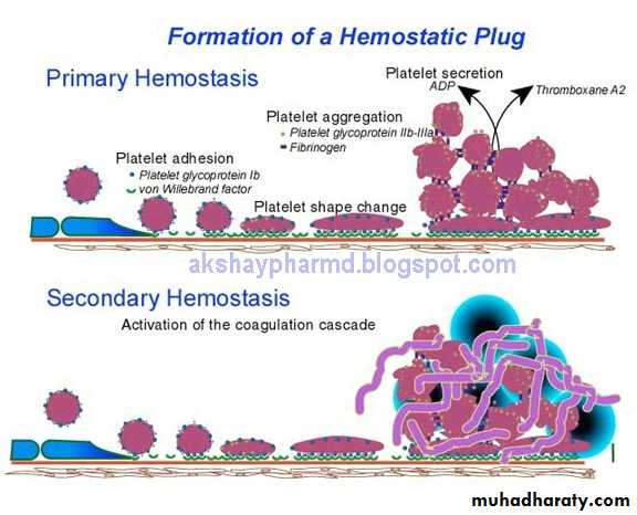 Platelets make a plug to patch the hole.Clotting factors in plasmawork together to form a clot over the plug.