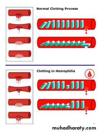 Haemophilia - clotting factor absent or low. This makes it difficult for the blood to form a clot, so bleeding continues longer than usual (not faster).