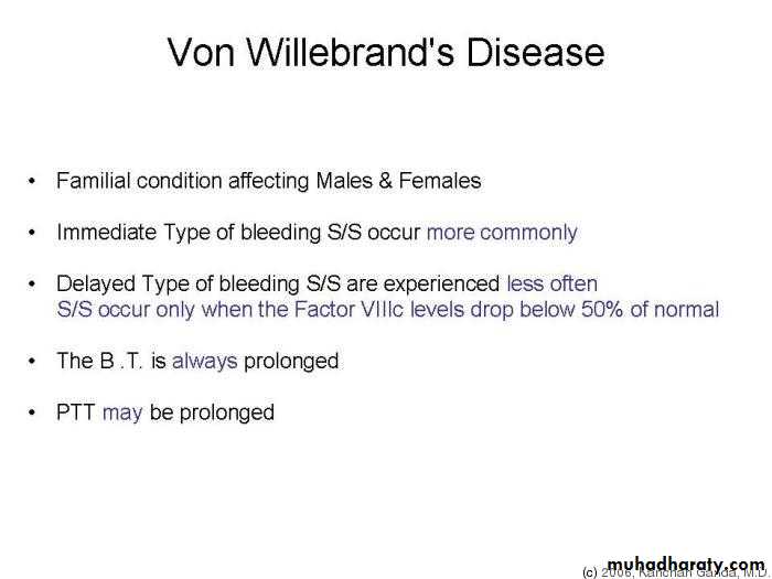 MILD/MODERATE BLEEDING TENDANCY mucocutaneous bleedingeasy bruising