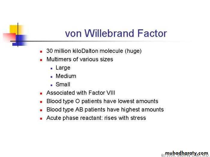 Large glycoprotein produced by endothelial cells and megakaryocytes