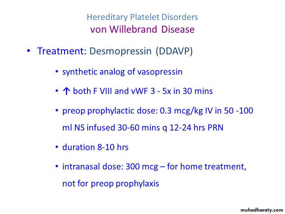 Promotes release of VWF and factor VIII from endothelial cells0.3ug/kg in 100mls N/Saline over 30 mins