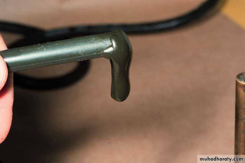 • The colour contrast between the two pastes is an aid to efficient mixing, which is continued until a homogeneous colour, with no streaks, is achieved.