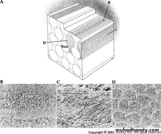• the boundary between rod and interrod is delimited by a narrow space containing organic material – rod sheath• A thin peripheral layer.