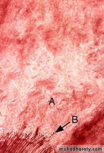 • Legend: A, Gnarled enamel; B, Enamel spindle