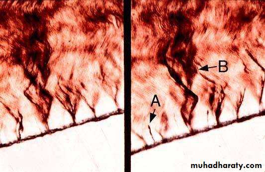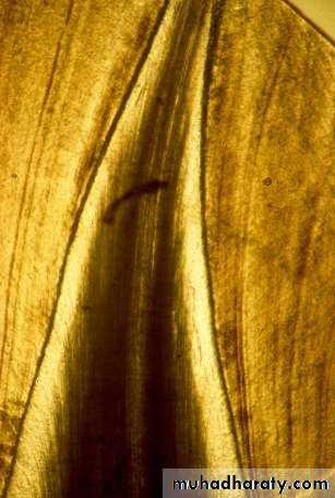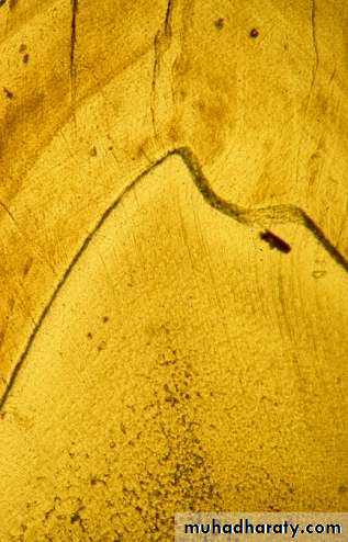 • Near the edge or cusp tip they are oblique• At the cusp tip they are almost vertical
