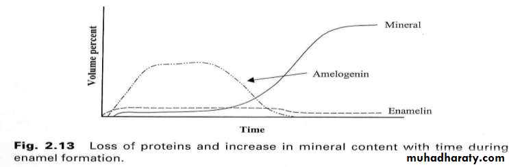 • Enamel initially starts with a high protein content, but these are removed and the voids backfilled with HAP as the tooth matures