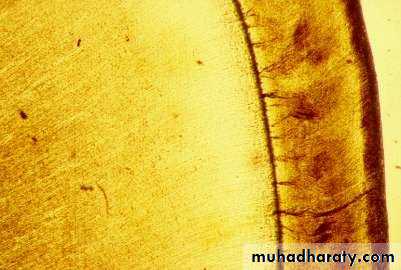• Usually at right angles to the Dentin surface.