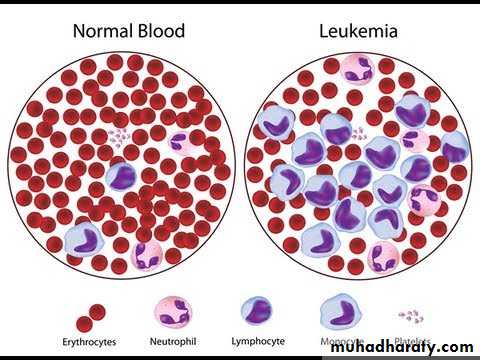 Leukemials cancer of the WBCs that affects the bone marrow and circulating blood. it involves proliferation of lymphoid or myeloid cells. Leukemia ls classified by the clinical course into: acute and chronic, and by the cell of origin into: lymphoid or myeloid (non-lymphoid). In acute leukemia there is a rapidly progressive disease that result from accumulation of immature, functionless WBCS ln the bone marrow and blood, it is more common than chronic leukemia. While in the chronic leukemia there ls slower onset and the cells are more mature
