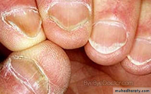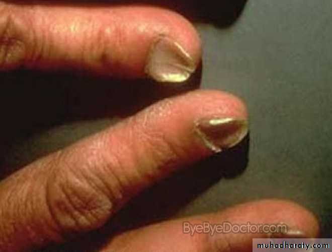 jaundice, pallor, brittle nails and Koilonychia (spoon shaped nails). There may be hepatosplenomegaly and LAP.
