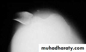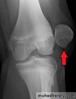 • It shows the displaced patella and the possible associated osteochondral fracture that occurs in 15% of the cases.