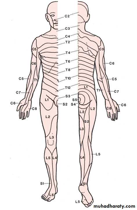 in specific muscle groups and changes in sensibility.Areas of altered sensation should be accurately mapped. Each spinal nerve root serves a specific dermatome