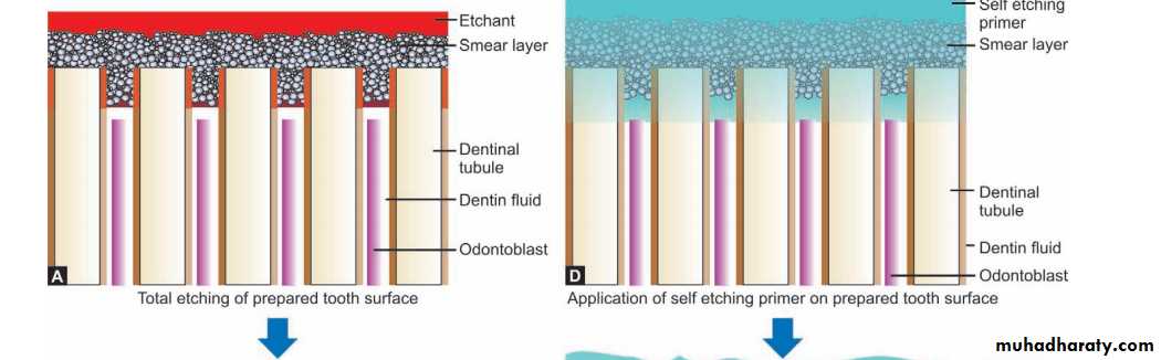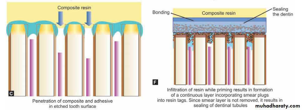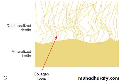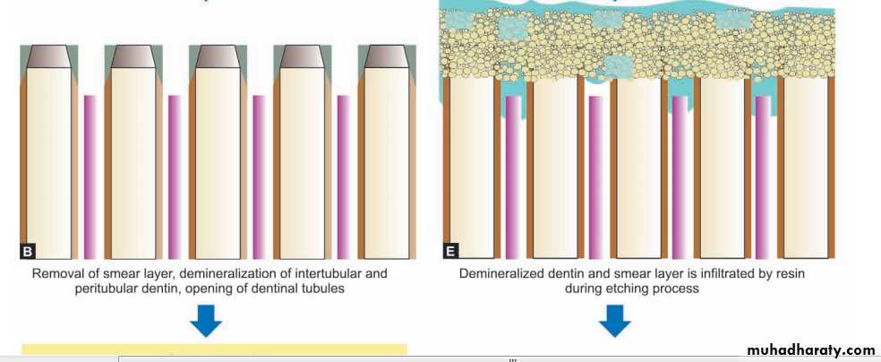 • The demineralized dentin is infiltrated by resin during the etching process