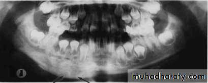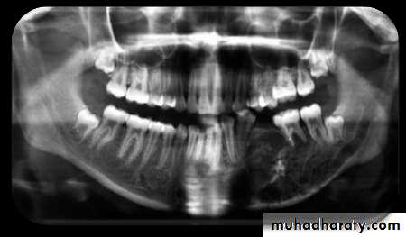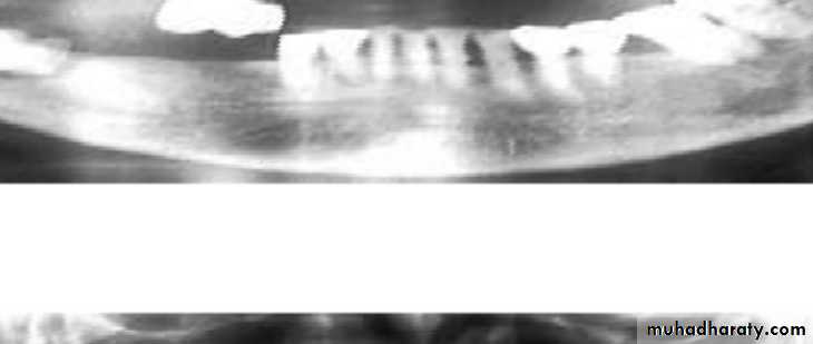 • DIFFUSE SCLEROSING OSTEOMYELITIS• Diffuse area of increased radiodensity of Rt. Side of mandible