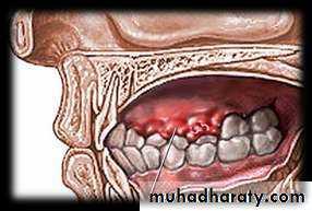 • SUPPURATIVE OSTEOMYELITIS• Source of infection is usually an adjacent focus of infection associated with teeth or with local trauma.