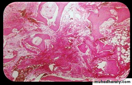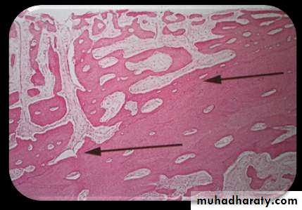 • Subperiosteal bone formation cause swelling to become firm.• HISTOLOGY