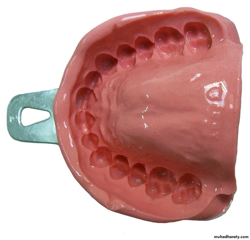 • Have sufficient mechanical properties ie. tear strength to resist tearing during impression removal from the undercuts