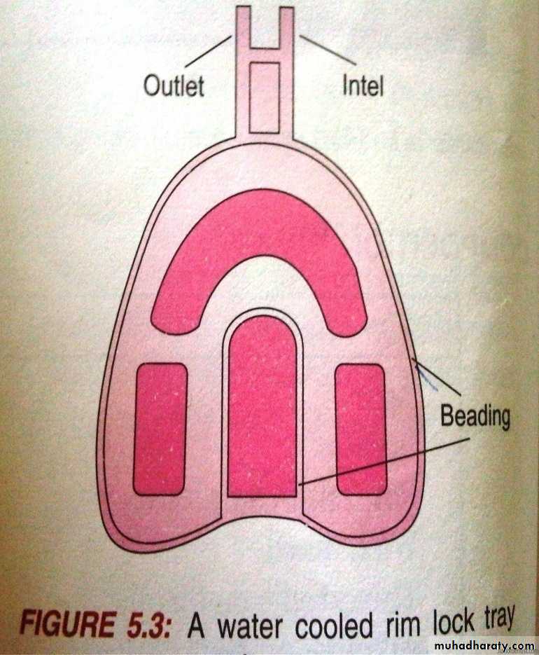 Rim lock trays with water circulating devices are used (water cooled rim lock tray).Rim lock has a beading on the inside edge of the tray which help to retain the material within the tray.
