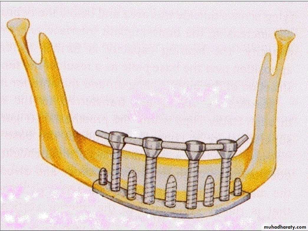 • Usually indicated in a severely resorbed, completely edentulous mandible which does not offer enough bone height to accommodate root form implants as anchoring devices.