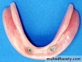 Or, as a minimal implant treatment objective for the partially edentulous patient with severely compromised teeth in which removal would convert a patient to a fully edentulous stateIn the two-implant over-denture, an attachment is used to greatly enhance the retentive potential of what is essentially a tissue-supported prosthesis.