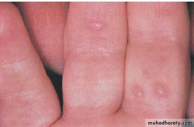 Vesicles, Particularly On The Extensor Surfaces Of The Hands and Feet. mainly the palm of the hand & sole of the feet