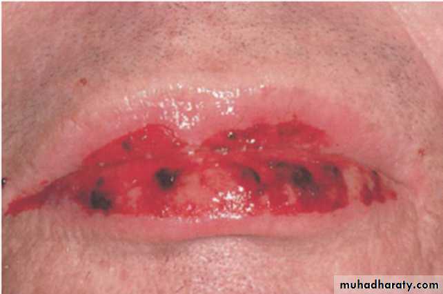 Paraneoplastic pemphigus , crusting hemorrhagic lip lesion