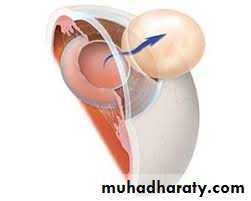 Is refers to a displacement of the lens from its normal position. The lens may be completely dislocated "Luxated" (complete destruction or cut of zonules) or partially dislocated "Subluxated".Causes: