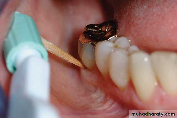 2. The instrument is activated with a firm pull stroke toward the crown, with every effort being made to preserve the twopoint contact with the tooth.