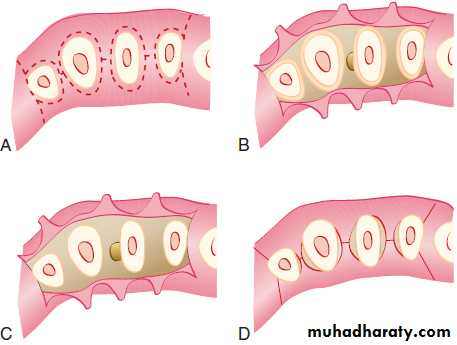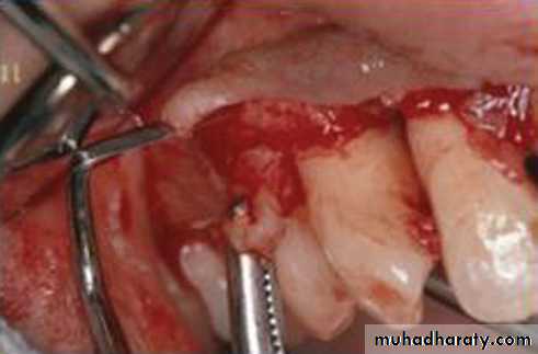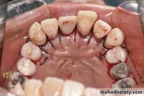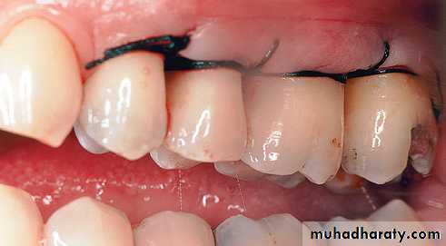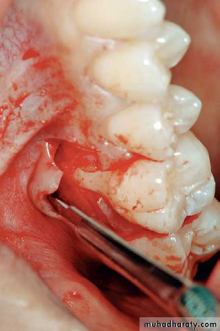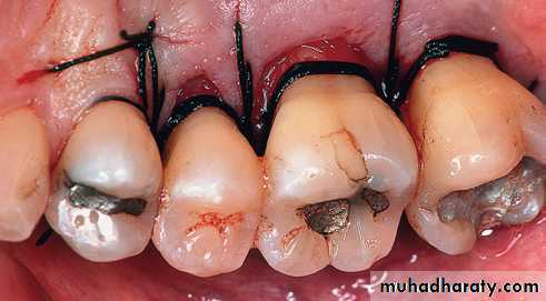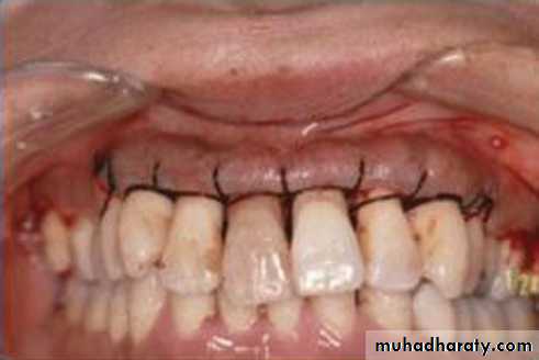 the lingual or palatal flaps. Then, periodontal dressing is placed.