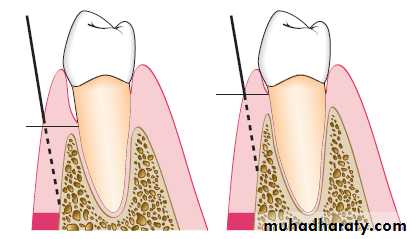 Step 1: The pockets are measured with the periodontal probe, and a bleeding point is produced on the outer surface of the gingiva to mark the pocket bottom.