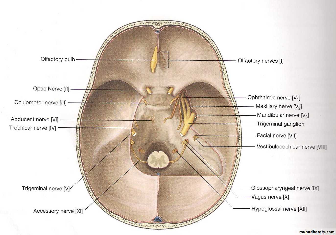 • 12- Hypoglossal nerve emerges from the medulla oblongata