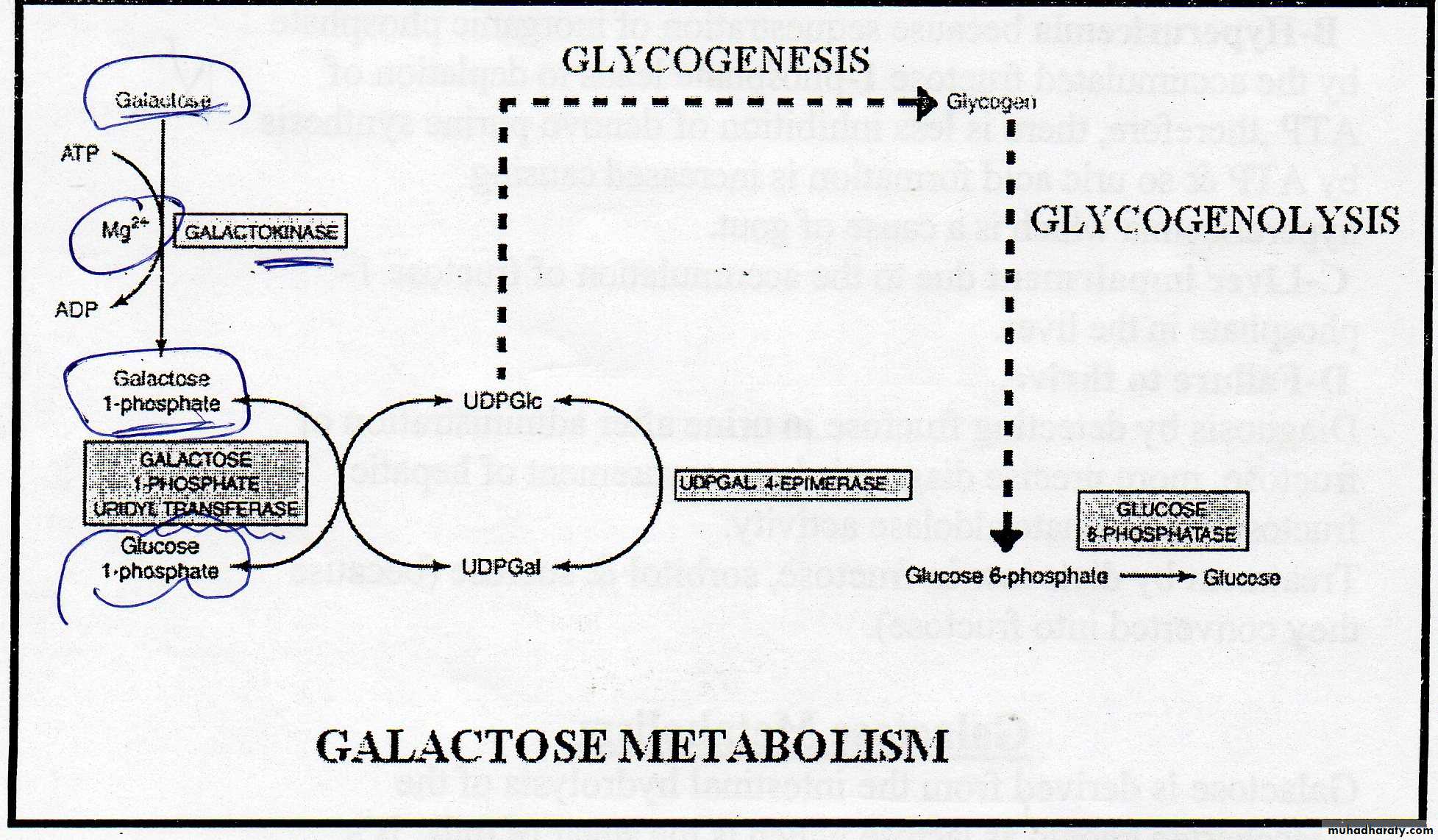 3.UDP galactose is converted to UDP glucose by epimerase enzyme.(reversible reaction).
