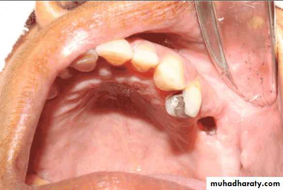 Before diagnostic impressions are made, any communication should be closed with gauge tied to dental floss.Detection of oral- antral and oral- nasal communications