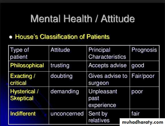 2. To Gain Insight Into The Psychologic Makeup of the patient (Philosophical, Exacting, Hysterical, Indifferent)