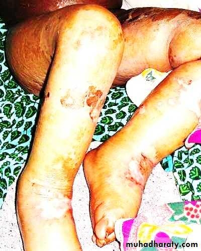 There is no subcutaneous fat, muscle wasting and diminution of length is usually clear.Edema is not noticeable .